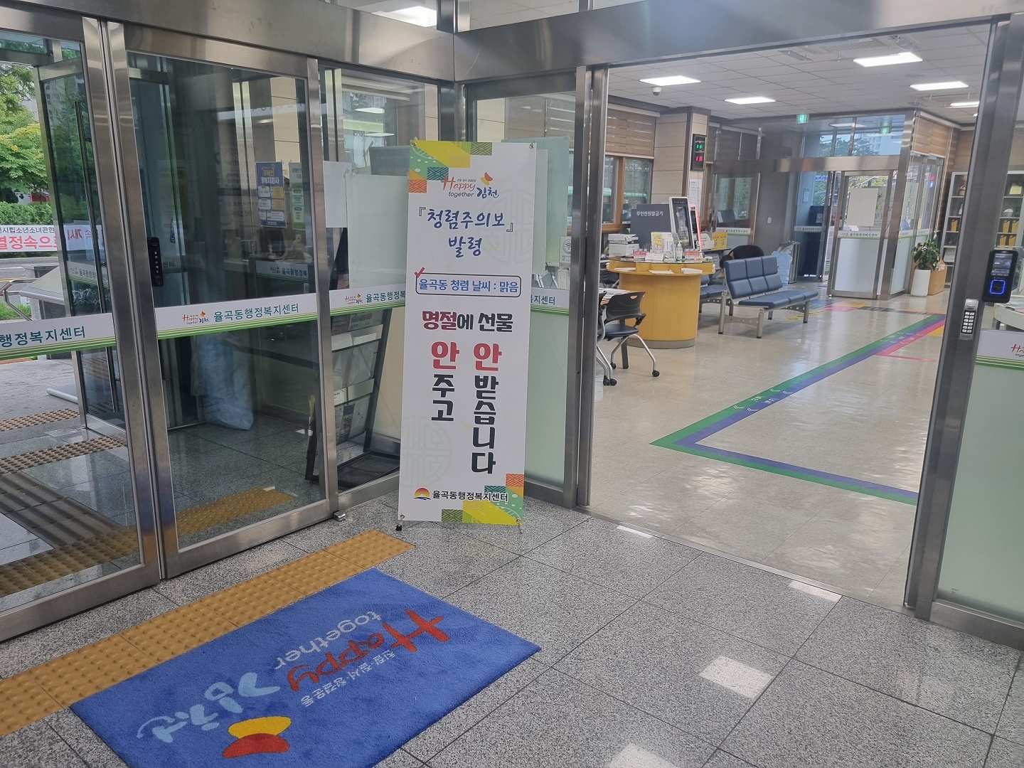 | 김천시 율곡동행정복지센터(김종현 동장)는 추석 명절을 앞두고, 청렴한 조직 문화 조성을 위해 앞장서고 있어 눈길을 끌고 있다.