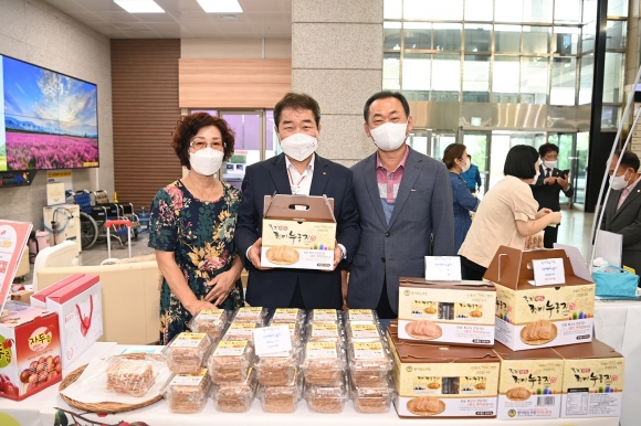 | 김천시(시장 김충섭)는 추석 명절을 앞두고 9월 1일 김천시청 1층 로비에서 오전 11시부터 오후 4시까지 관내 사회적경제기업과 청년창업 기업이 직접 생산한 제품 홍보하고 판매하는 행사를 진행했다.