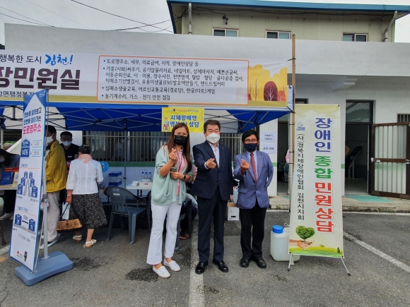 | (사)경북지체장애인협회 김천시지회(지회장 박희만)는 9월 1일 “김천시 찾아가는 현장민원실”과 연계하여 부항면 행정복지센터에서 이동상담 및 카툰전시회를 실시하였다.