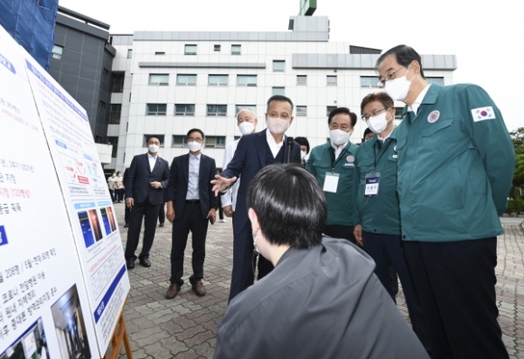 |  | | | ⓒ 김천내일신문 | | 한덕수 국무총리는 9월 2일 경북 안동의 경북도립노인전문요양병원을 방문하여 요양병원에서의 코로나19 대응상황을 점검하고, 병원 의료진, 돌봄인력 등 관계자들을 격려하였다.