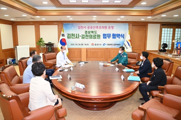 | 김천시(시장 김충섭)는 지난 9월 6일 경상북도김천의료원(이하 김천의료원)과 공공산후조리원 위탁 운영에 따른 업무 협약을 체결했다. 이번 협약에 따라 김천의료원은 2026년까지 5년간 위탁 운영하게 된다. 김천의료원은 지역거점공공병원으로 감염 및 안전관리 등 경험과 전문성이 풍부한 곳으로 산모와 신생아에게 전문적이고 효율적인 산후조리 및 건강관리를 할 것으로 기대된다.