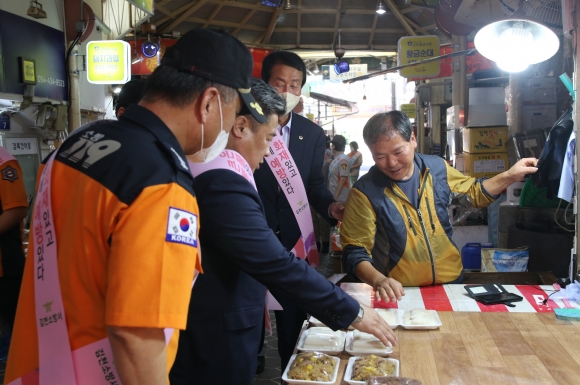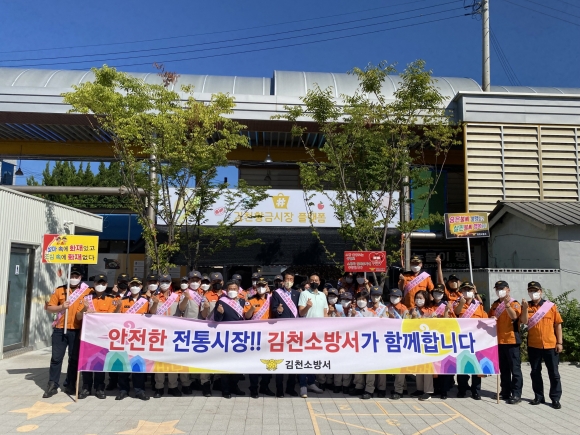| 김천소방서(서장 전우현)는 9월 7일 김천 황금시장 및 평화시장에서 추석 명절을 맞아 코로나19로 침체된 지역 경제 활성화를 위해 전통시장 장보기 행사 및 화재예방 캠페인을 가졌다고 밝혔다.