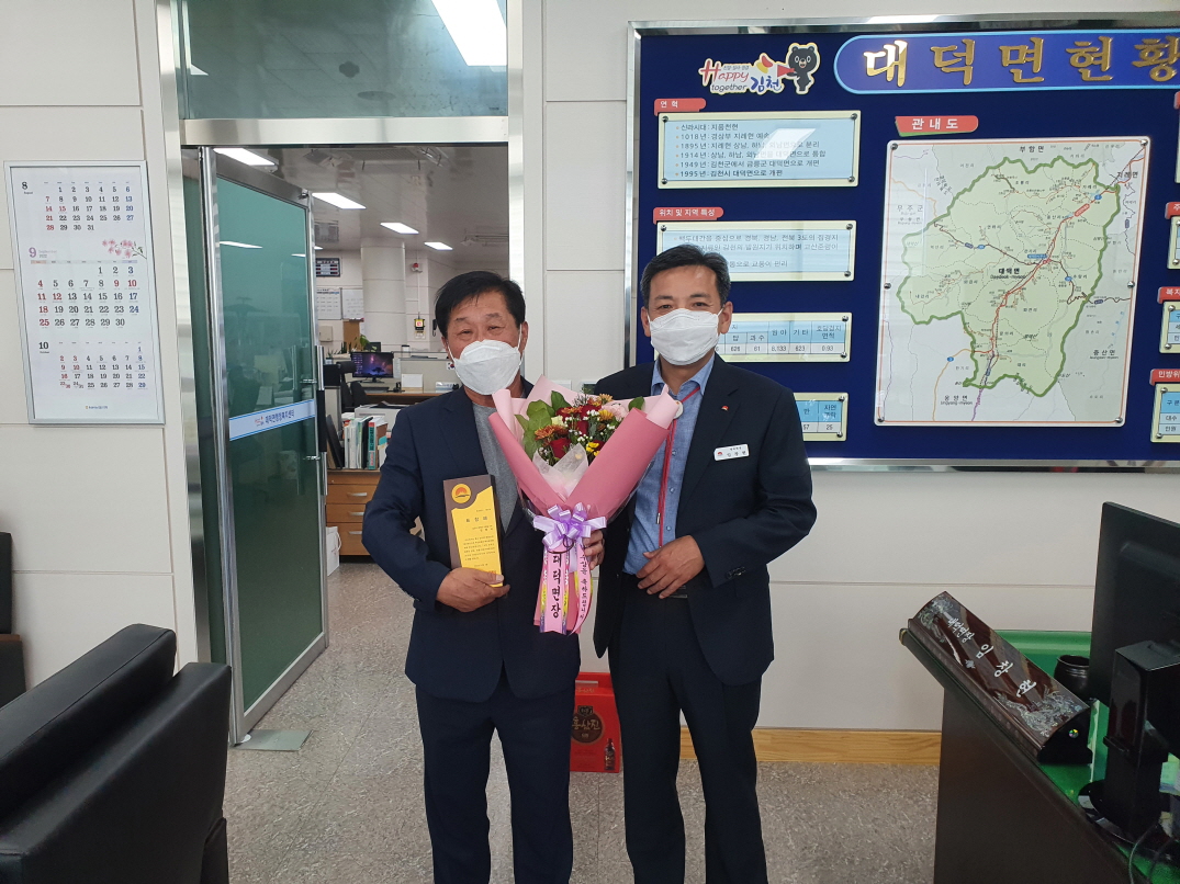| 김천시 대덕면(면장 임창현)에서는 지난 9월 15일 대덕면행정복지센터 면장실에서 시정유공 민간인 표창패 전수식을 가졌다.