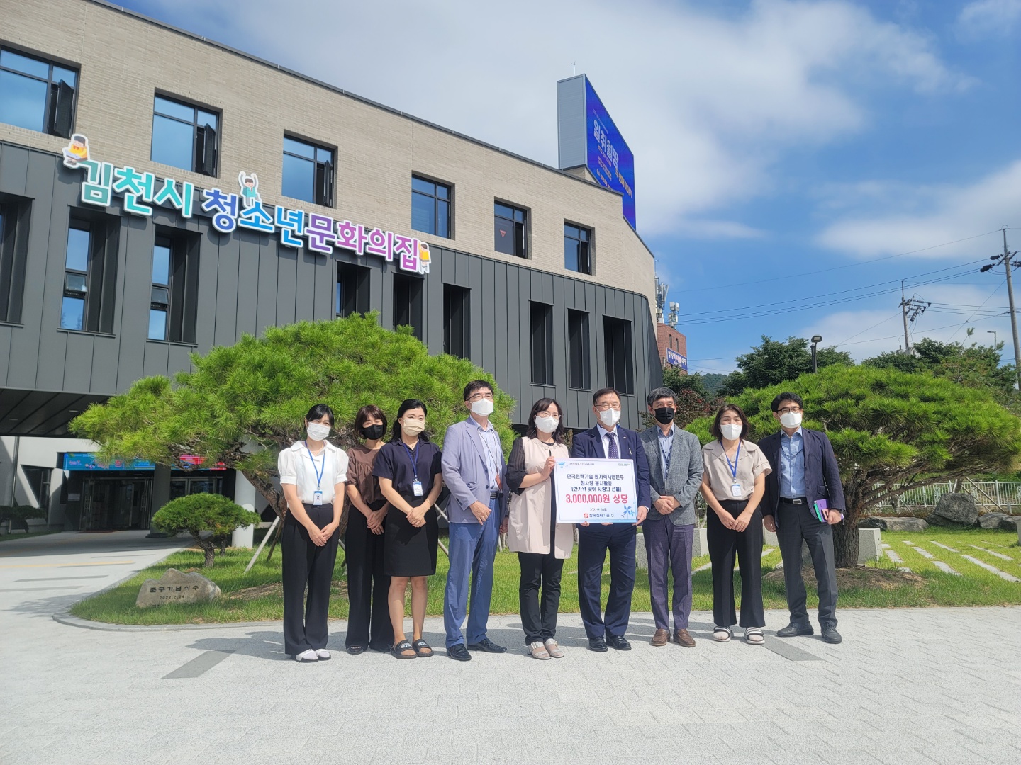 이날 전달식에는 한국전력기술 6명의 직원과 김천시 관계자, 청소년상담복지센터 관계자 등 총 13명이 참석했다.