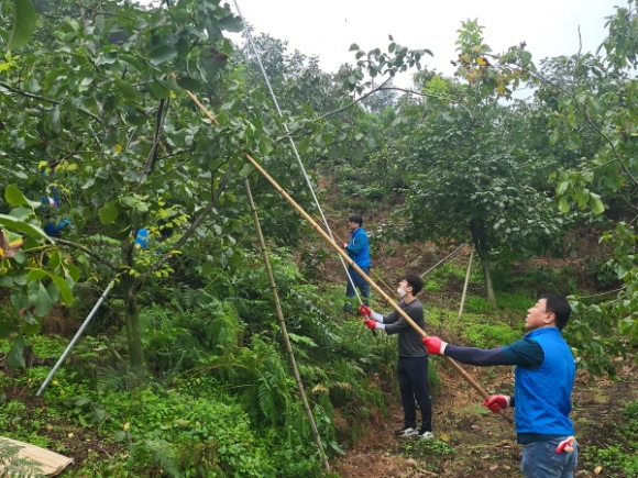 |  | | | ⓒ 김천내일신문 | | 김천 중앙새마을 금고(이사장 엄태영) 다빈봉사단에서는 지난 9월17일 전 직원이 동원되어 대덕면 연화리 호두 따기 봉사활동을 펼쳤다. 호두는 9월에 수확하는 시기로 농촌 일손부족과 더불어 다른 농작물과 수확하는 과정이 장대를 휘둘러서 따는 어려운 작업이며 전 직원들은 공휴일도 반납하고 구슬땀을 흘리며 봉사활동을 실시하였다.