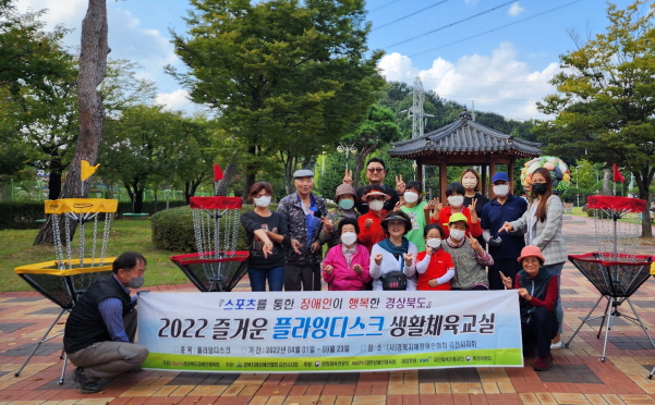 |  | | | ⓒ 김천내일신문 | | (사)경북지체장애인협회 김천시지회(지회장 박희만)는 지난9월23일 “2022 즐거운 플라잉디스크 교실” 종강식을 가졌다.