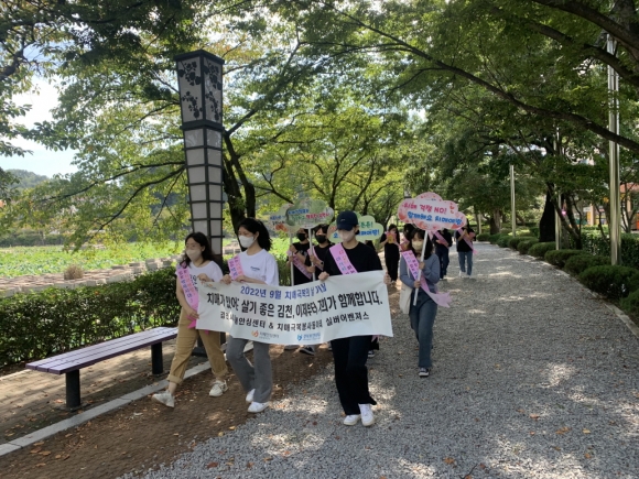 경북보건대학교 치매극복 봉사동아리(실버어벤져스)와 함께 연계하여 김천연화지 및 김호중 소리길 일대를 돌며 지역주민을 대상으로 거리 캠페인 활동 및 홍보부스 운영 등 치매에 대한 올바른 인식이 자리 잡을 수 있도록 홍보했다.
