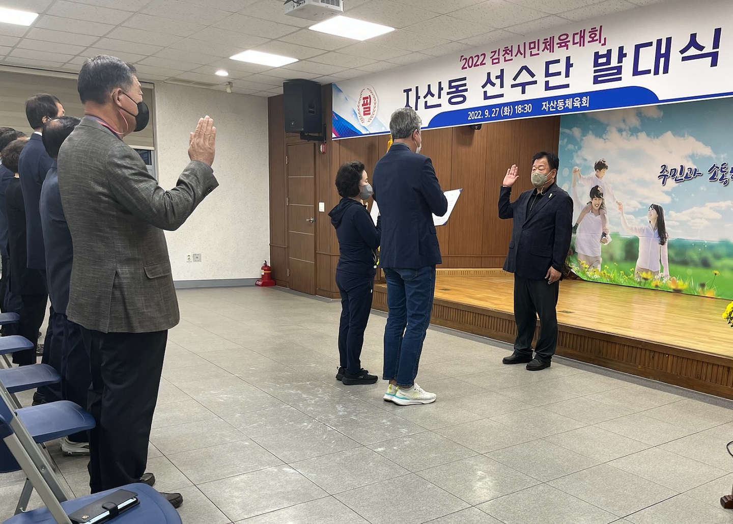 | 자산동 체육회 및 자산동에서는 9월 27일 저녁 자산동행정복지센터 2층 회의실에서 2022년 김천시민체전 참가를 위한 선수단 발대식을 개최했다.