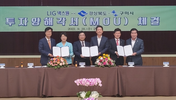 경북도와 구미시는 28일 구미시청에서 열린 LIG넥스원과의 투자협약식에서 1100억원 규모의 투자양해각서에 서명했다고 발표했다.