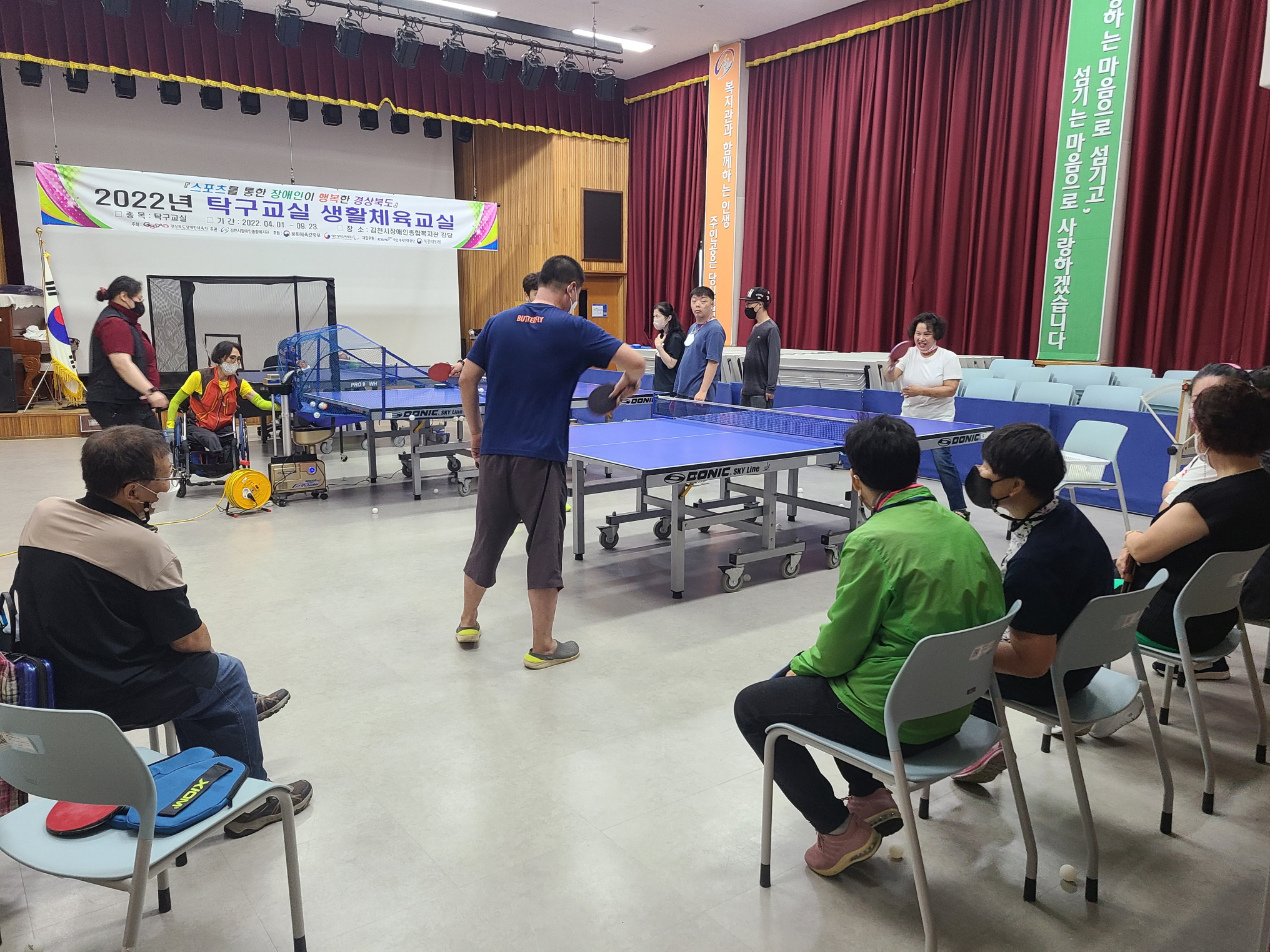 | 김천시장애인종합복지관(관장 안민)은 2022년 장애인체육회 지원사업에 탁구교실이 선정되어 2022년 4월 ~ 9월 까지 총 24회로 진행했다.