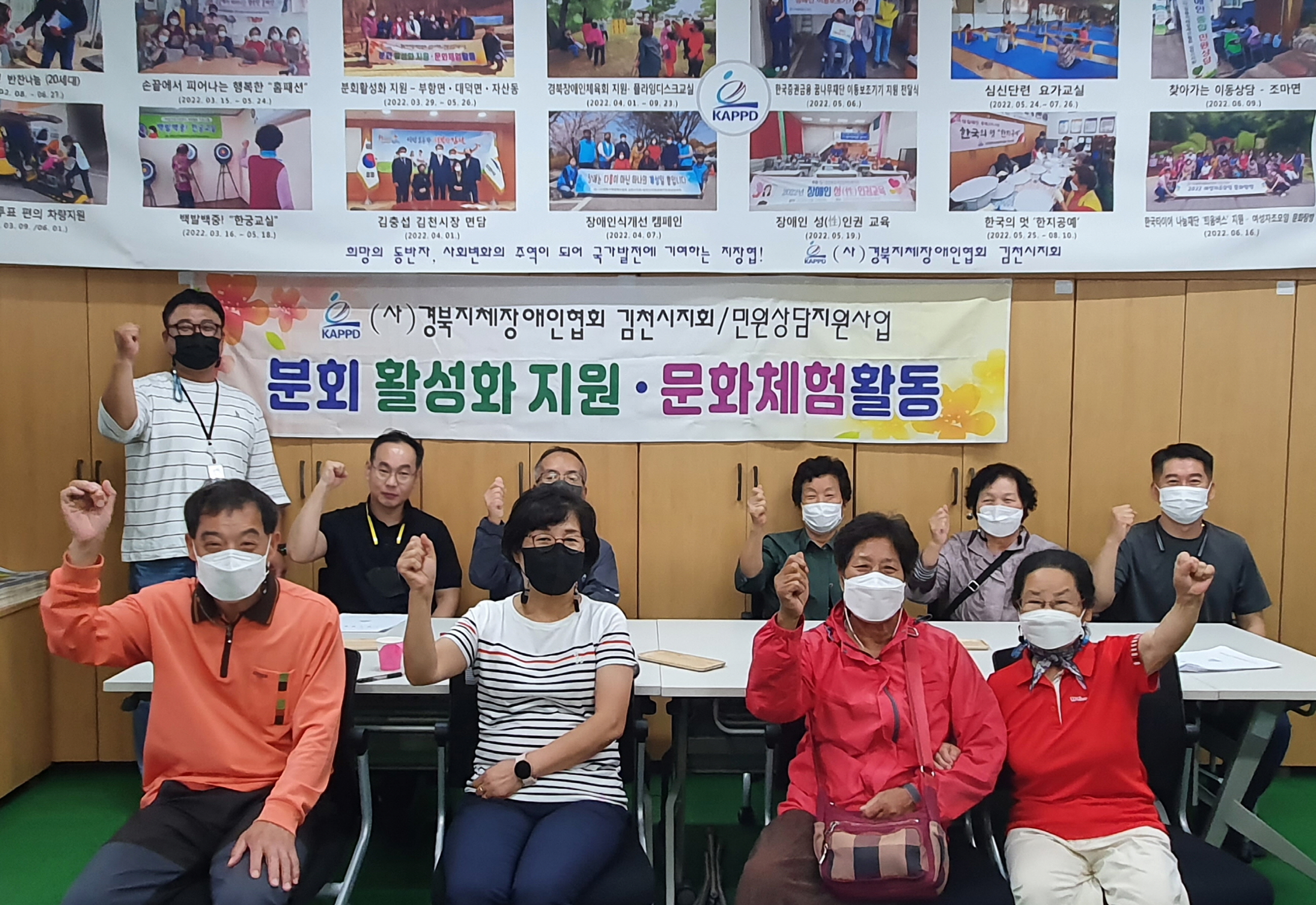 | (사)경북지체장애인협회 김천시지회(지회장 박희만)는 10월 04일 양금동 회원들 대상으로 지회 복지서비스와 부대사업 설명과 의견을 나누는 “분회 활성화 지원 사업”을 실시하였다.