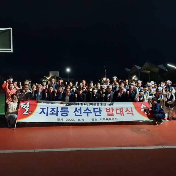 | 지좌동체육회(회장 도병기)에서는 지난 10월 5일 덕곡체육공원에서 지좌동 체육회 회원을 비롯해 남상연 지좌동장, 배형태 시의원, 박대하 시의회 산업건설위원장, 각 단체장 및 종목별 선수 등이 참여한 가운데 2022년 김천시민체육대회 지좌동 발대식을 개최했다.