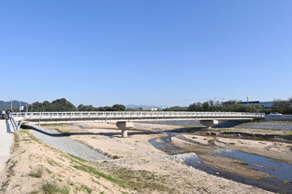 이에, 김천시에서는 2020년 설계를 시작으로 하천기본계획 변경 등 각종 인허가를 완료하고, 총사업비 25억 원을 투입하여, 폭 7m, 연장 85m의 교량을 설치하는 것으로 지난 2021년 6월 공사착공으로 1년 3개월의 공사기간을 거쳐 11일 뜻깊은 준공을 맞이하게 된 것이다.