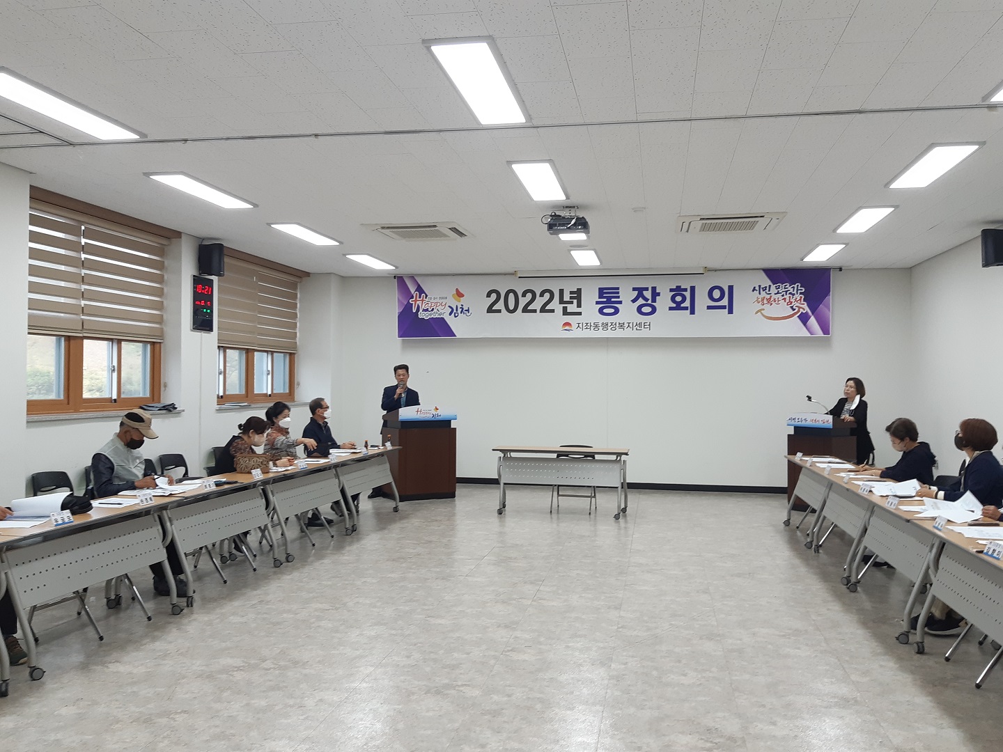 이번 통장회의는 10월 14일(금) 3년 만에 열리는「2022년 김천시민체육대회」를 일주일여 앞두고 소통과 화합의 장을 마련하고자 각 통장들의 적극적인 협조를 구하기 위해 개최되었으며, 내빈인사, 시민체육대회 안내 및 협조, 시정홍보, 자체회의 순으로 진행되었다.