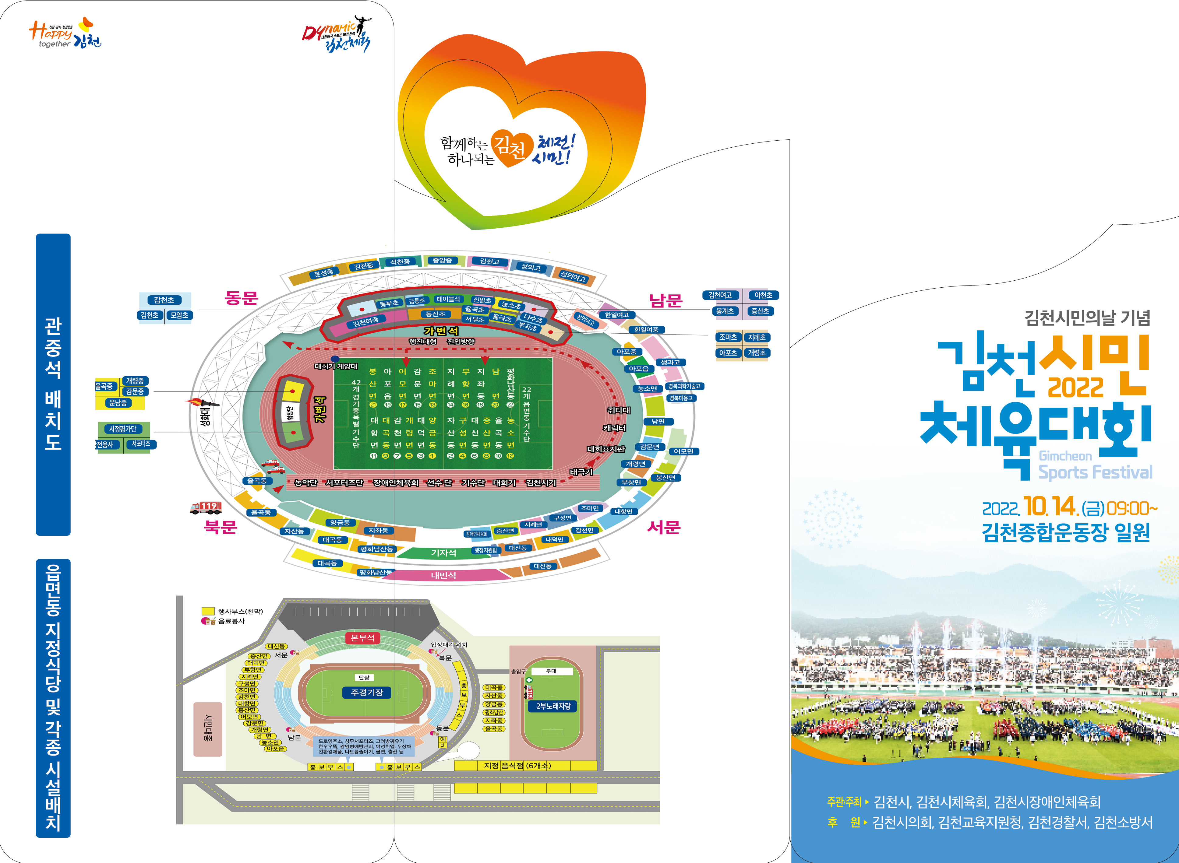 | 오는 10월 14일 김천시민의 날을 기념하여 김천시민들의 화합한마당 잔치인‘2022 김천시민체육대회’를 종합운동장에서 개최한다.