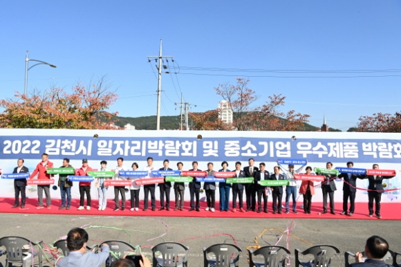 |  | | | ⓒ 김천내일신문 | | 김천시(시장 김충섭)는 10월 14일 구인·구직난을 겪고 있는 관내 기업체 및 지역민에게 만남의 장을 마련하여 일자리 문제 해소 및 지역의 고용안정을 도모하고, 지역중소기업의 우수 생산제품 홍보와 판로 개척지원으로 지역 기업의 경쟁력 향상을 위해 「2022 김천시 일자리박람회 및 중소기업 우수제품 박람회」를 개최했다.
