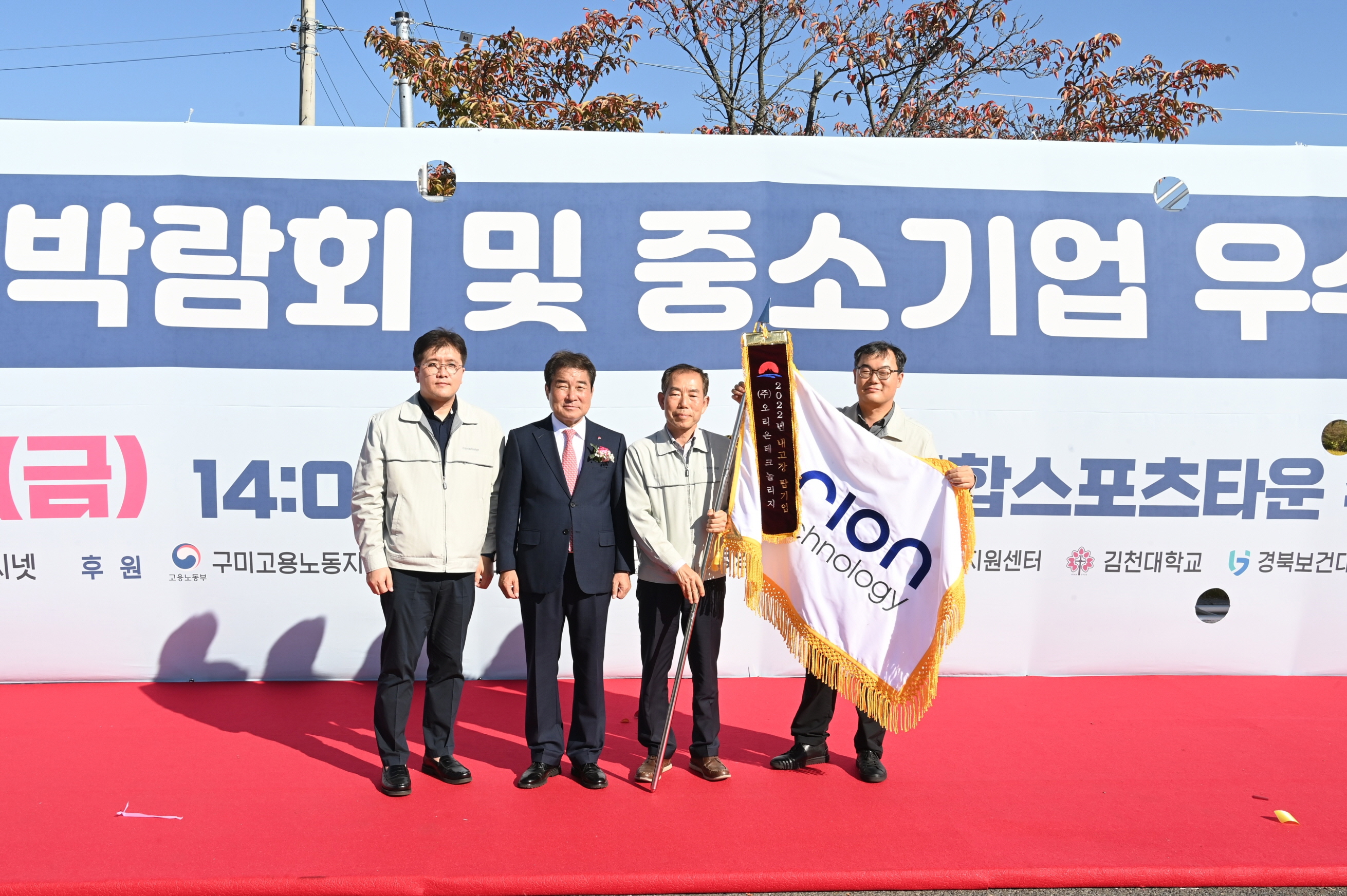 선정패 전달은 2022 김천시 일자리 박람회 및 중소기업 우수제품 박람회 개회식에서 진행되었으며, 김충섭 김천시장, 이명기 김천시의회의장, 안용우 김천상공회의소 회장, ㈜오리온테크놀리지 최천형 대표 및 임직원 등 40여 명이 참석한 가운데 선정패 및 깃띠 수여가 이루어졌다.