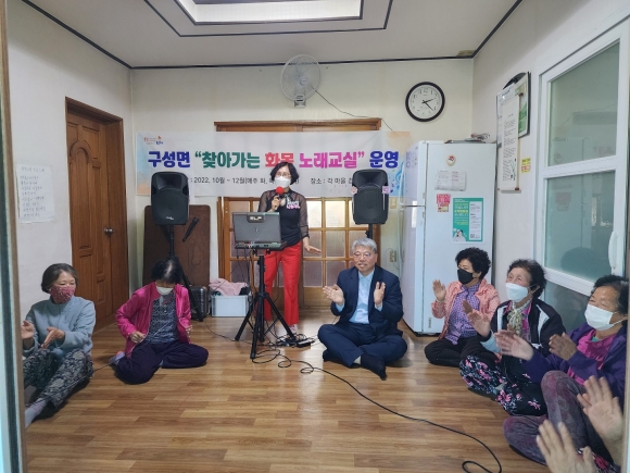 | 김천시 구성면(면장 김동진)에서는 10월부터 12월까지 찾아가는 이동교육원의 일환으로 몸과 마음치료 미술교실, 건강요가 교실 및 경로당에 직접 찾아가는 화목 노래교실 프로그램을 운영한다.