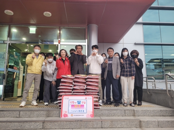 | 정문겸 자산동 영농회장과 자 정정화씨는 지난 10월 21일 취약계층을 위해 백미 10kg 30포를 자산동 행정복지센터에 기부했다. 정문겸 영농회장은 매년 직접 키우고 재배한 농산물을 동 행정복지센터에 기부해오고 있어 주위에 훈훈한 감동을 주고 있으며, 이날 김경하 자산동장과 최상동 통장협의회장이 함께 고마운 마음을 전했다.