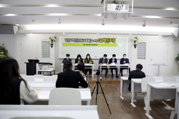 |  | | | ⓒ 김천내일신문 | | 김천대학교(총장 윤옥현)는 급변하는 교육환경 변화를 극복하고 지속적인 교육혁신을 통한 대학발전을 꾀하고자 지난10월25일 '제1회 GU혁신포럼'을 개최하였다.