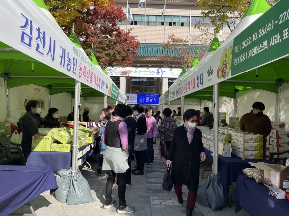 이날 대구 동구청 열린 광장에서는 김천시로 귀농한 10여 농가가 참여해 샤인 머스캣, 사과, 표고버섯 등 다양한 물품을 전시·판매하여 지역 주민들의 큰 호응을 얻었다. 또한 고향의 우수한 농산물을 팔아주기 위해 재구 김천 향우회 박원규 회장을 비롯한 회원들이 행사장을 방문해 물품을 구매하여 고향의 정을 느끼게 했다. 이번 행사를 통해 김천시의 우수 농특산물 홍보했으며 25백만 원의 판매고를 올려 귀농인들의 소득에도 보탬이 되었다.