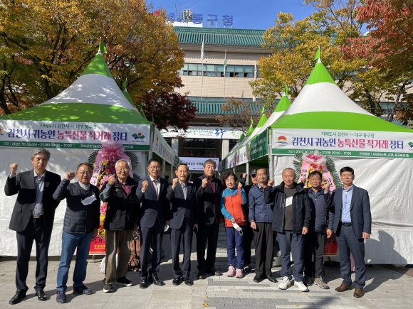 | 김천시(시장 김충섭)는 10월 26일, 27일 양일간 자매도시 대구 동구청을 방문하여 김천시 귀농인 농특산물 직거래 장터를 열었다.