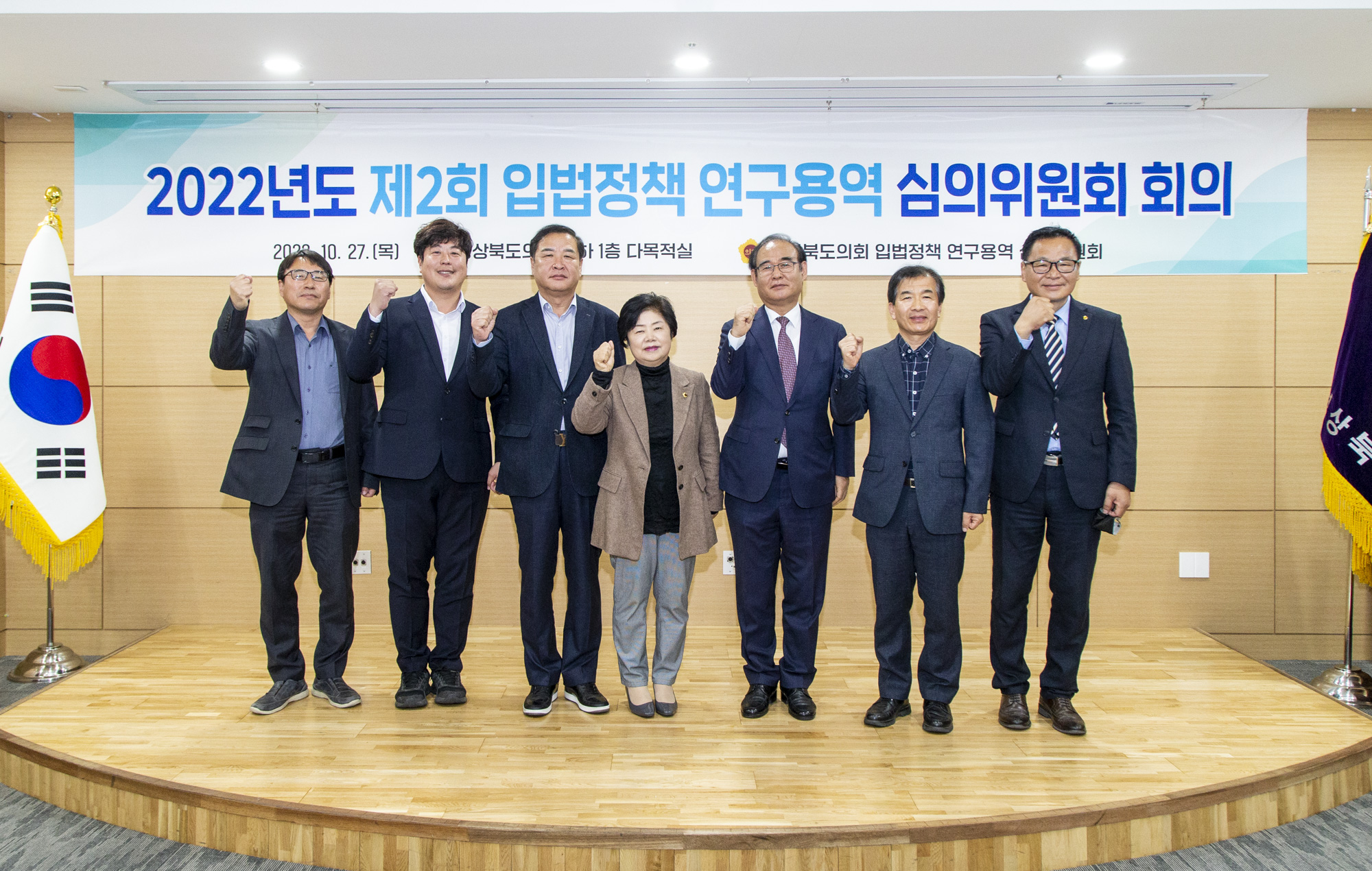 | 경상북도의회는 10월 27일 의회 다목적실에서 2022년도 입법정책 연구용역 제2차 심의위원회를 개최하여, 신임 입법정책연구용역 심의위원 위촉 수여 및 연구단체로부터 제안된 4건의 연구과제에 대해 심의·의결했다.