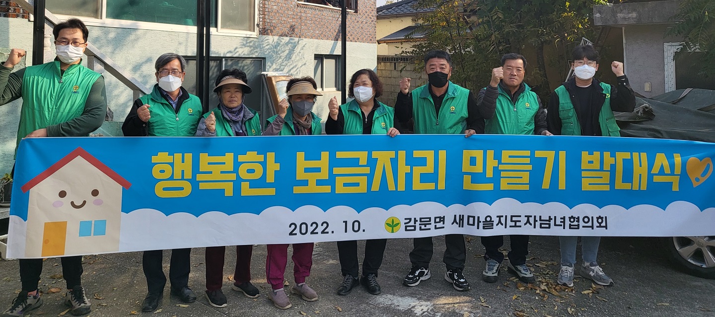 | 감문면 새마을지도자남녀협의회(회장 박갑용, 강인희)는 지난 10월 28일(금) 오전 9시 30분 도명리에서 새마을 임원 6명이 참석한 가운데 사랑의 집 고쳐주기 발대식을 했다.