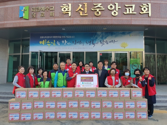 이번 후원물품 기탁은 혁신중앙교회 설립 33주년을 맞이하여 주변의 어려운 이웃들과 함께 의미 있는 날을 기념하고자 하는 취지에서 마련됐다. 이충현 목사는 “지역 내 어렵고 힘든 분들에게 따뜻한 마음을 담은 선물박스가 조금이나마 위로가 되길 바란다”고 했다.