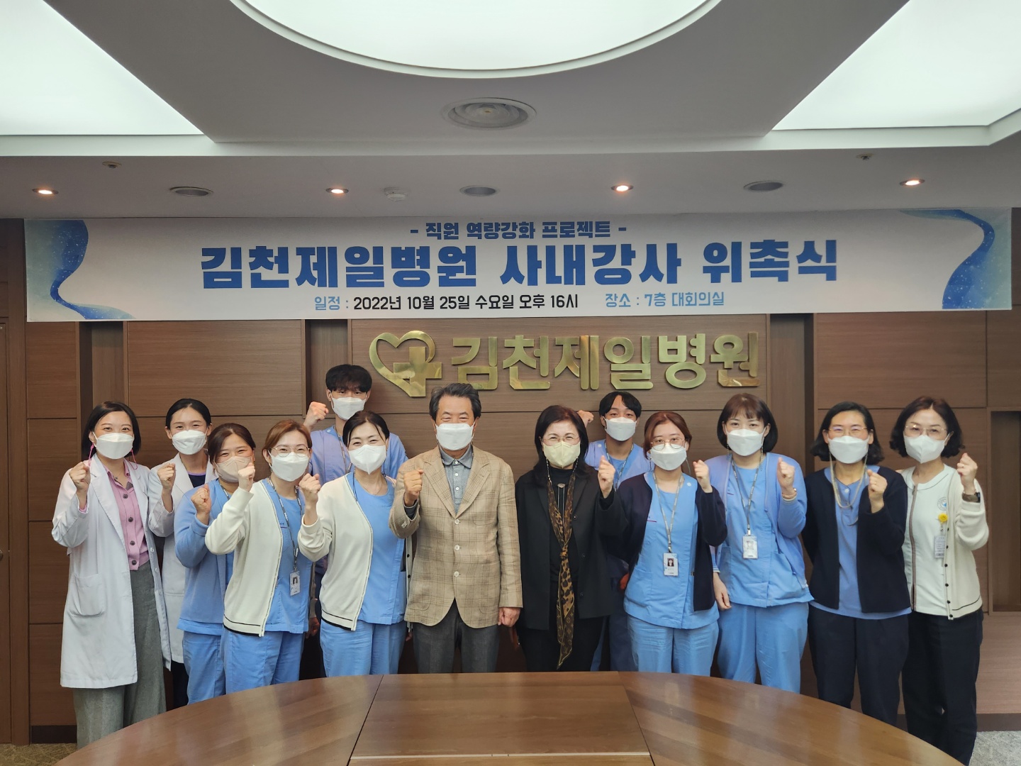 | 의료법인 덕산의료재단 김천제일병원이 지난 10월 26일 임직원들의 맞춤형 교육을 담당할 병원 사내강사 9인에 대한 교육을 완료하고 위촉식을 가졌다.
