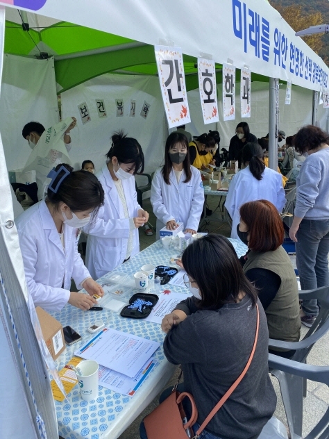 특히, 66년 전통의 간호학과 학생들이 지역사회 주민들을 위해 부스 운영 도우미로 봉사활동을 진행하며, 박람회를 찾은 지역주민들을 위해 혈당 및 혈압 측정, 보건 상담 등의 부스를 운영하여 의료 봉사 활동을 하는 뜻깊은 시간을 보냈다. 뷰티디자인과는 복지박람회 참가자를 대상으로 ▲ 네일 아트 ▲ 핸드 마사지 등 다양한 뷰티(beauty) 서비스를 제공했다.