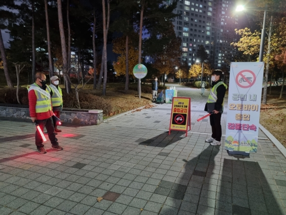 시는 혁신도시공원 내 오토바이(이륜차) 통행이 많은 4곳에서 집중적으로 계도활동을 실시했다.