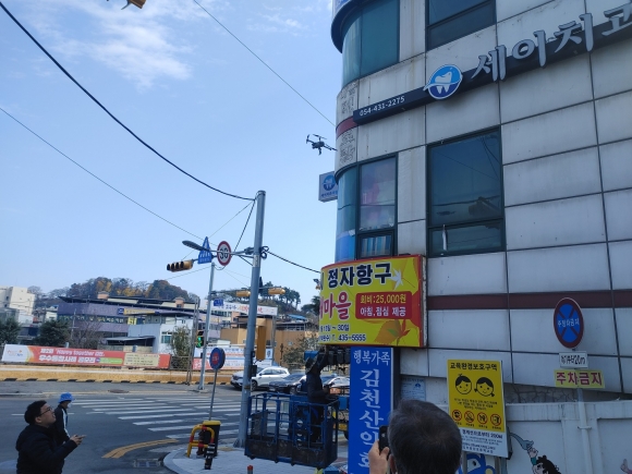 드론 활용 김천역 주변 상가 간판 점검 실시
