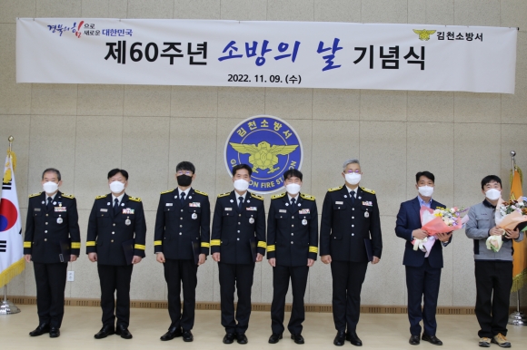 | 김천소방서(서장 전우현)는 11월 9일 김천소방서 2층 대회의실에서 제60주년 소방의 날 기념행사를 개최하였다.