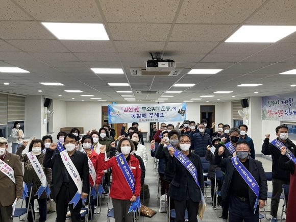11월부터 집중적으로 관내 각 통장 및 관변 단체들에 김천시 전입 혜택과 출산 장려 시책 등 홍보활동을 추진하고 있으며, 지난 11월 7일 통장회의에서 14만 인구 회복을 위한 “김천愛 주소 갖기 운동”을 위한 결의를 다졌다.