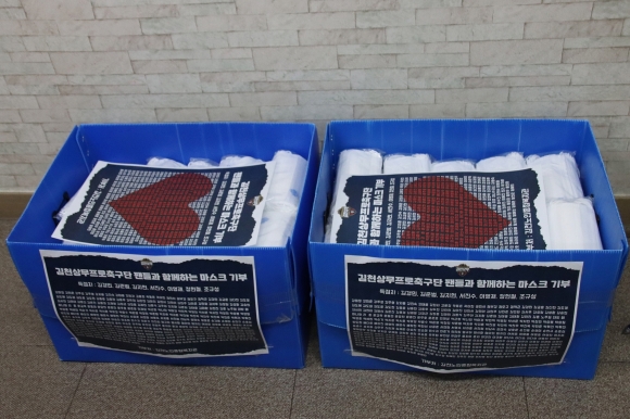 | 김천상무프로축구단이 득점 연계 마스크 기부를 통해 지역 밀착에 앞장섰다.