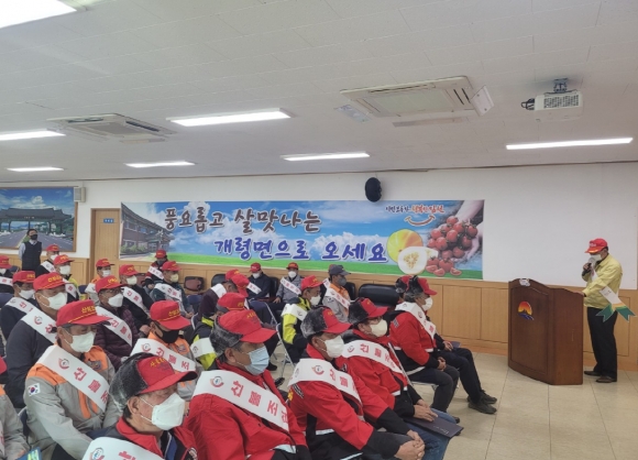 | 개령면행정복지센터(면장 이승만)는 지난 11월 10일 2층 회의실에서 최근 건조한 날씨로 산림 피해에 대한 경각심을 고취하고 산불방지 결의를 다지기 위해 『2022년 산불예방교육 및 결의대회』를 개최했다.