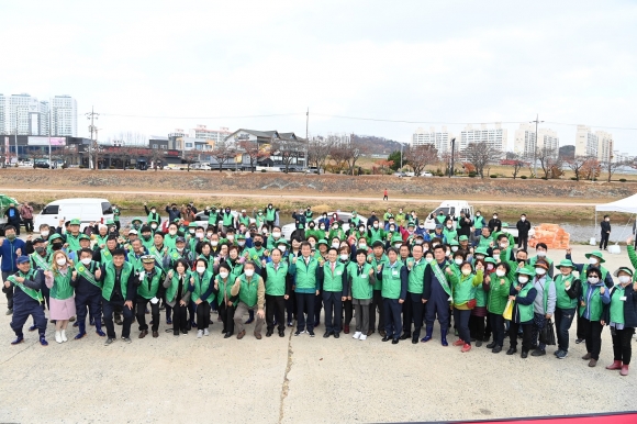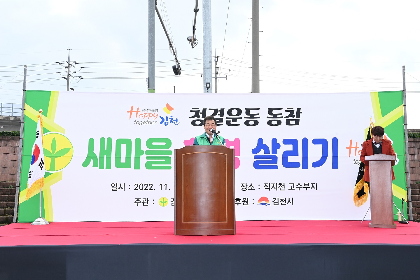 | 김천시새마을회(회장 임영식)는 11월 14일 직지천 고수부지에서 ‘새마을환경살리기’행사를 개최했다. 이날 행사에는 김충섭 김천시장, 오세길 김천시의회 부의장을 비롯한 시의원, 관내 기관·단체장, 새마을지도자 등 300여명이 참석했다.