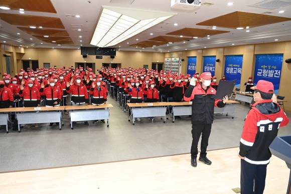 산불방지 결의대회에 이어 산불방지의 중요성, 예방활동에 따른 주안점, 진화 시 유의할 사항 및 단말기 사용요령 등 진화대원 및 감시원들의 근무요령에 대한 전반적인 교육이 진행되었다.