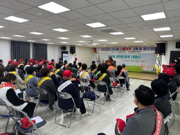 | 김천시 대신동(동장 김윤수)은 지난 11월 14일 대신동 행정복지센터 2층 회의실에서 산불 없는 대신동 만들기를 위한 ‘2022년 산불예방교육 및 결의대회’를 개최했다.