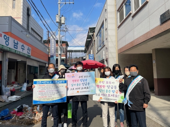 | 김천시 양금동행정복지센터(동장 이재수)에서는 11월 15일 황금시장 일대에서 인구증가를 위한 가두 캠페인을 실시했다.