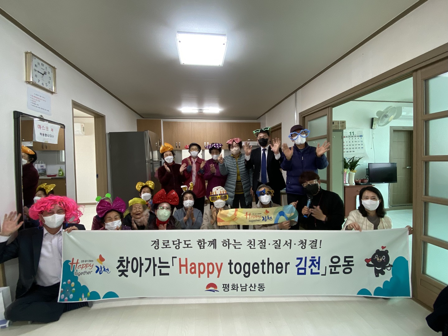 이번 교육은 노인 인구 비율이 높은 평화남산동의 특수성을 반영하여 관내 경로당 전체 10개소를 직접 방문하여 경로당 어르신 200여명을 대상으로 Happy together 김천 운동 교육을 통해서 올바른 선진 시민의식 함양을 위해서 실시됐다.