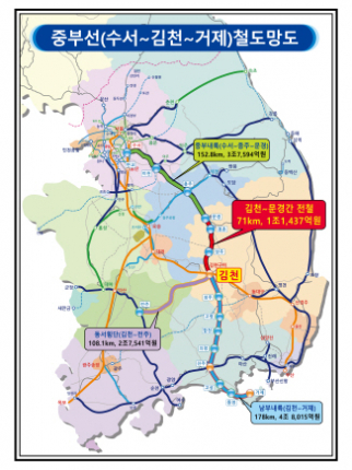 중부내륙철도(김천~문경) 사업이 최종 확정되면 김천시는 명실상부한 철도특별시로의 도약이 기대되며, 현재 설계추진 중인 남부내륙철도에 이어 자체 평가 결과 높은 경제성을 확보한 대구광역권 철도 2단계(김천~구미), 현재 사전타당성조사 추진 중인 동서횡단철도(김천~전주) 등 국토중심지로서의 위상과 발전이 기대된다.