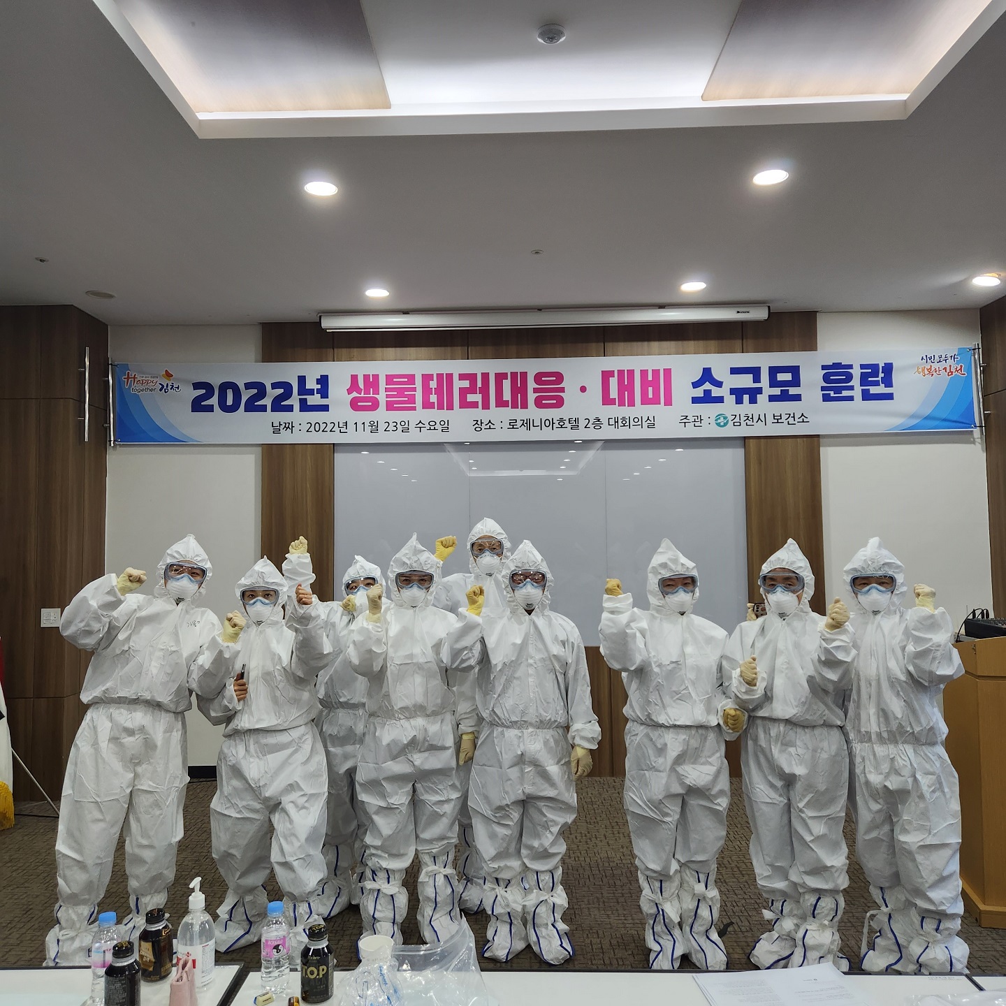 | 김천시 보건소는 지난 11월 23일 김천 호텔로제니아 대회의실에서 ‘2022년 생물테러 대응·대비 훈련’을 실시했다.