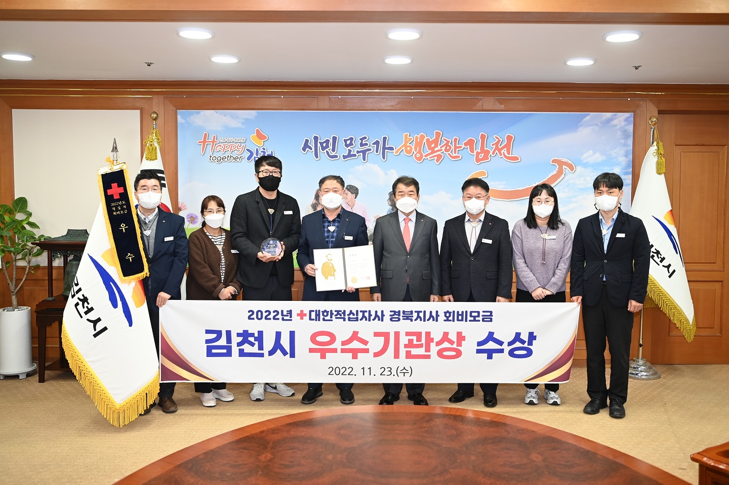 | 김천시(시장 김충섭)가 지난 11월 23일 대한적십자사 창립 117주년 기념 경북지사 연차대회에서 ‘2022년 적십자 회비모금 우수 기관상’으로 선정됐다.