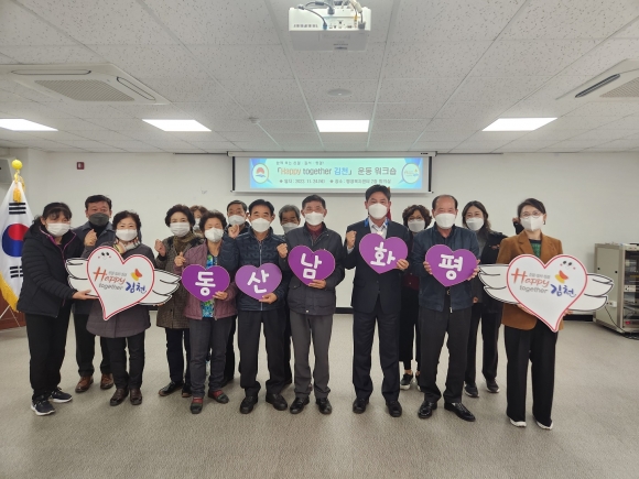 | 평화남산동(동장 이우원)은 11월 24일 동 행정복지센터에서 「Happy together 김천」운동 워크숍을 개최했다고 밝혔다.