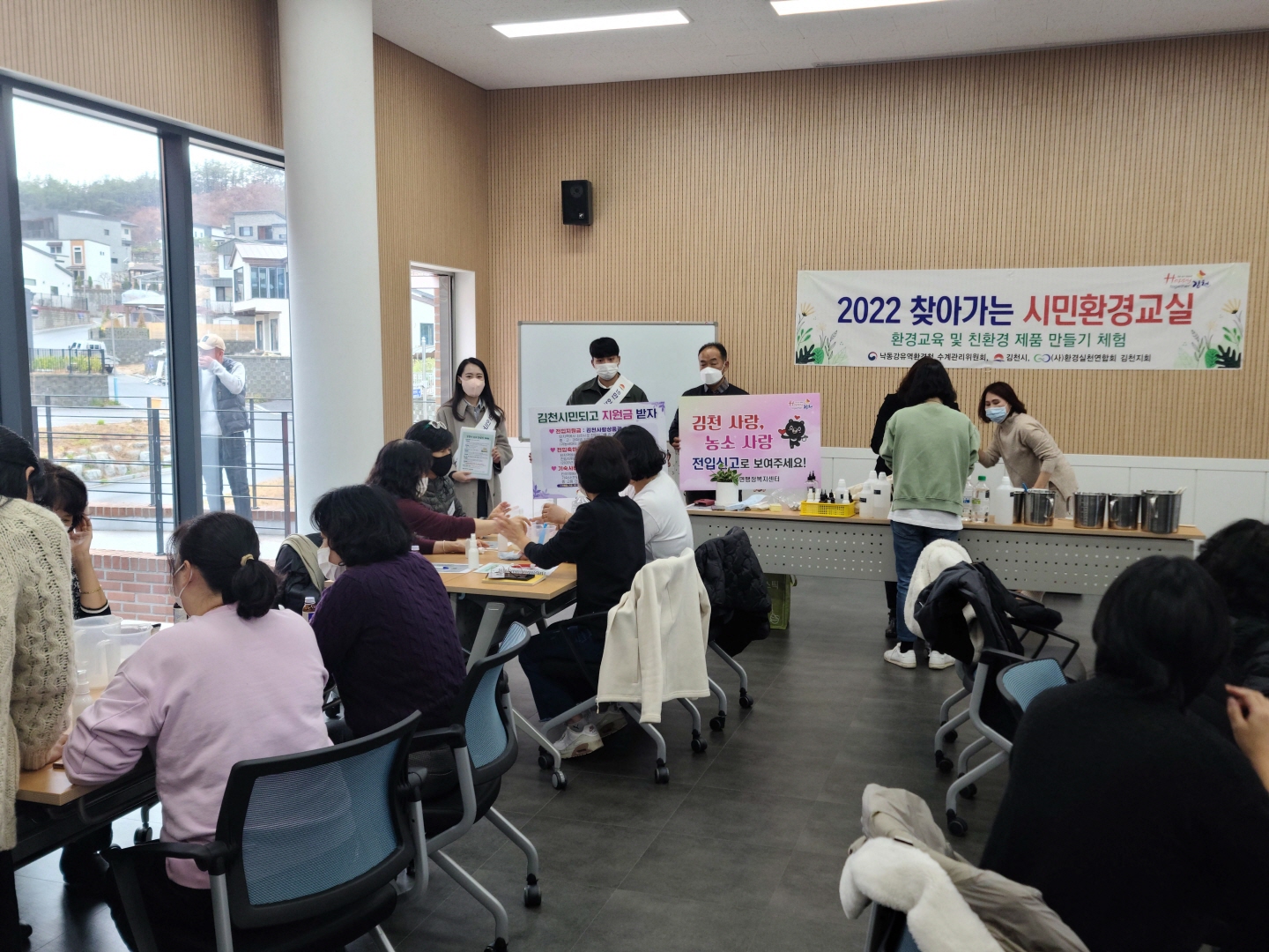도공촌은 김천혁신신규마을 조성 사업의 성공 사례로써 김천혁신도시 이전 공공기관 직원들의 새로운 삶의 터전이 되고 있다. 이 날은 도공촌 커뮤니티센터 2층 회의실에서 도공촌 새마을부녀회를 대상으로 ‘찾아가는 시민환경교실’이 운영되었으며 도공촌의 많은 주민들이 교육을 듣기 위해 한자리에 모였다. 농소면 직원들은 이날 모인 주민들을 대상으로 아직까지 도공촌에 입주하여 실거주하고 있지만 전입신고를 하지 않은 주민들의 전입신고를 독려하고 김천시 신규 전입자 혜택을 설명하는 등 인구증가 캠페인을 펼쳤다.