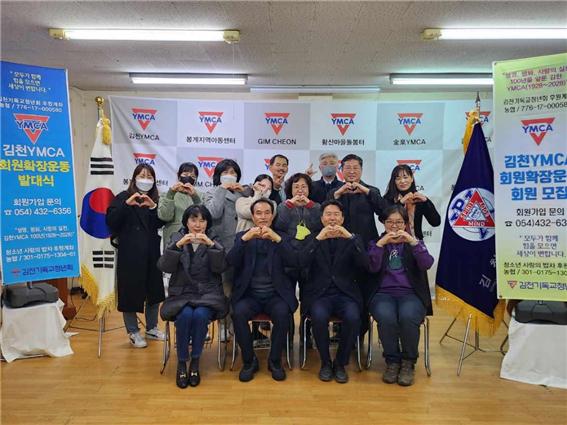 | 시민, 청소년, 기독교, 사회, 민간, 비영리 단체인 김천YMCA(이사장 김재용, 사무총장 이기락)는 11월 29일 김천YMCA 세미나실에서 회원확장운동을 조직하고 발대식을 가졌다. "김천YMCA 회원이 된다는 것은 아름다운, 행복한 지역사회를 만들어가는 뜻있는 일에 동참하는 행복한 첫 걸음입니다“" 구호 아래 가진 이 날 발대식은 이기락 사무총장의 사회로 한국YMCA 목적문을 낭독하고 김재용 이사장 인사말씀, 박희대 직전이사장 기도 후 이기락 사무총장이 2023년 회원확장운동 계획과 성공적인 회원확장운동에 대해 설명하는 순서로 진행되었다.