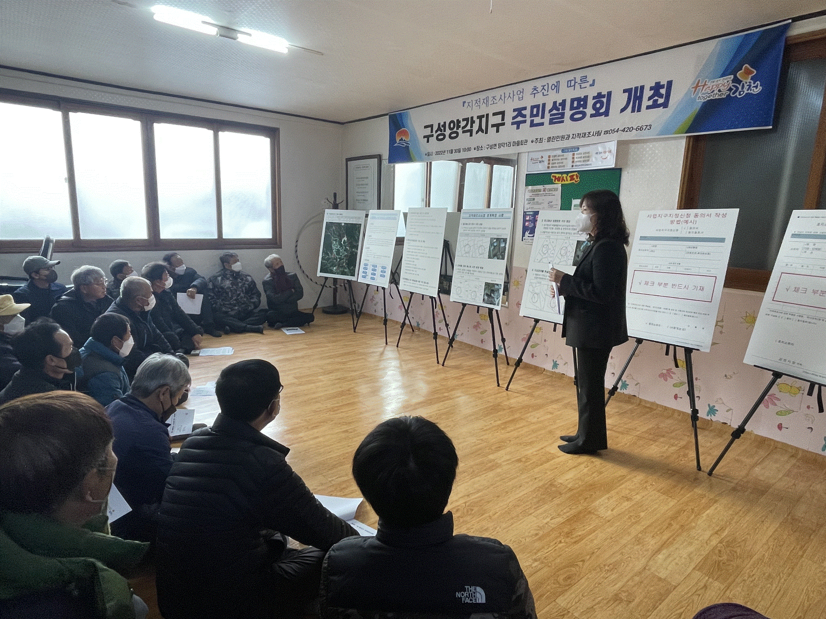 주민설명회에서는 지적재조사사업을 본격적으로 추진하기에 앞서 지적재조사사업의 목적과 배경, 사업 추진 절차, 현장 측량을 위한 주민들의 협조사항 등에 대하여 설명하고 토지 소유자의 의견을 청취했다. 지적재조사사업은 토지의 실제 현황과 지적공부가 일치하지 않는 지적불부합지를 실제 현황 기준으로 조사·측량해 새로운 지적공부를 작성하는 사업이다. 김천시는 지적재조사사업을 통해 맹지를 해소하고, 이웃 토지와 분쟁의 소지가 있는 건축물의 저촉 해소, 토지의 정형화와 같이 불합리한 토지 경계를 새롭게 결정하는 등 토지의 가치 상승과 시민의 재산권 보호에 기여할 것으로 기대하고 있다.