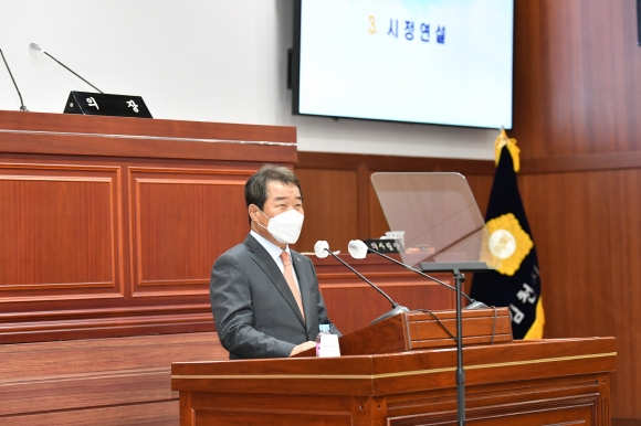 | 김천시는 12월 1일 김천시의회 본회의장에서 열린 제233회 김천시의회 제2차 정례회에서‘2023년도 예산안’과 함께 시정연설을 통해 2023년도 시정운영 방향을 밝혔다.